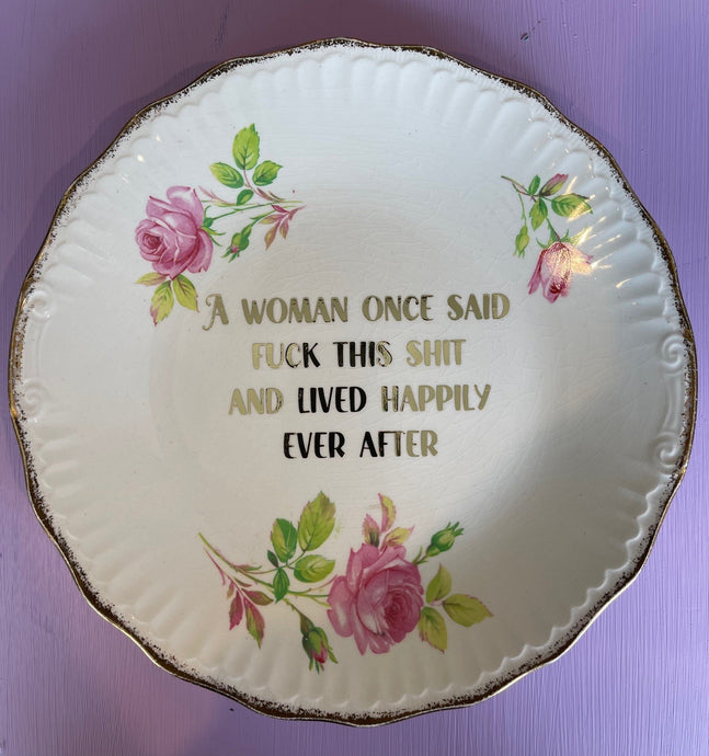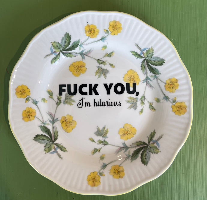 Greer Mathers is the woman behind Loser Plates. She collects beautiful vintage plates and applies crude vinyl cut graphics.